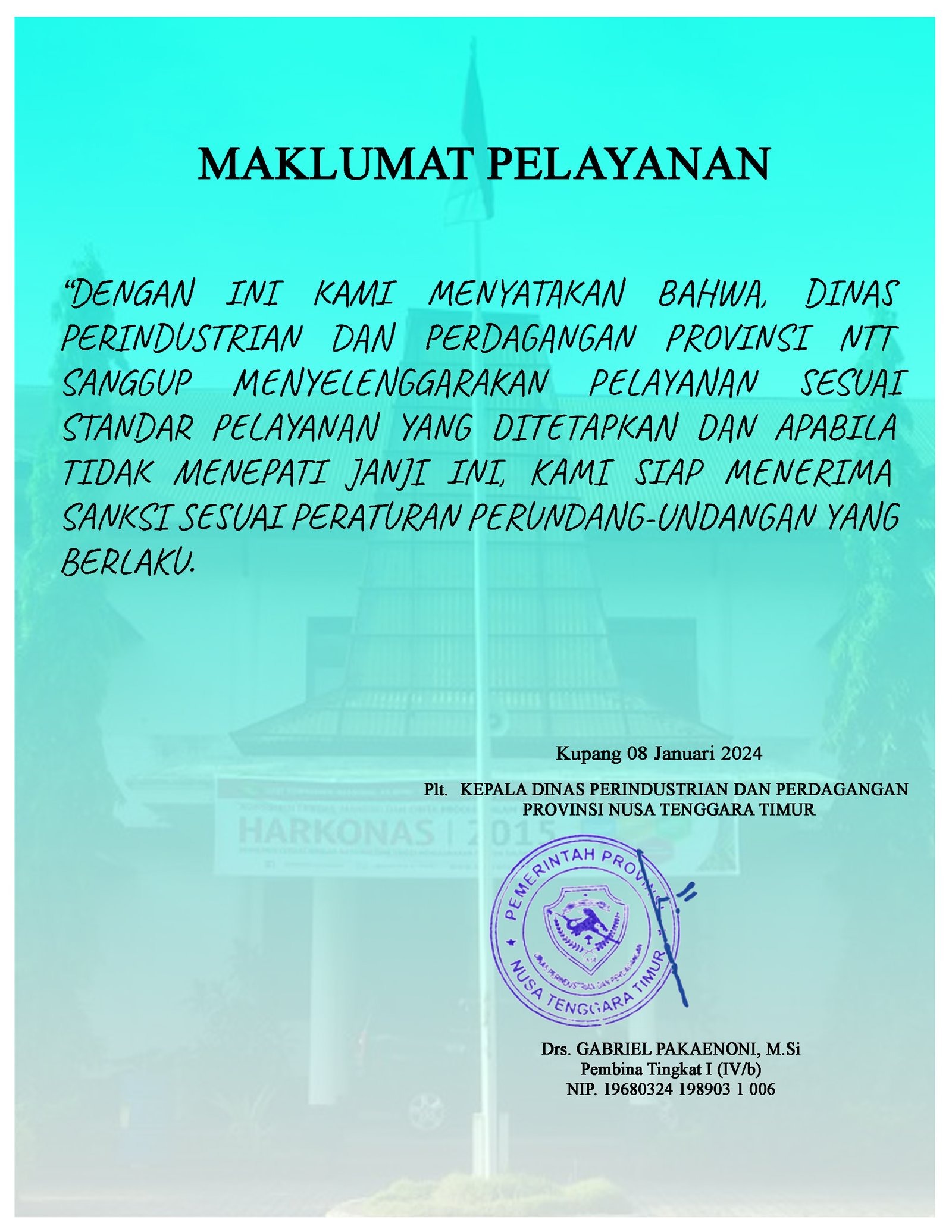 4. Maklumat Pelayanan Dinas Perindustrian dan Perdagangan Provinsi NTT sebagai berikut: